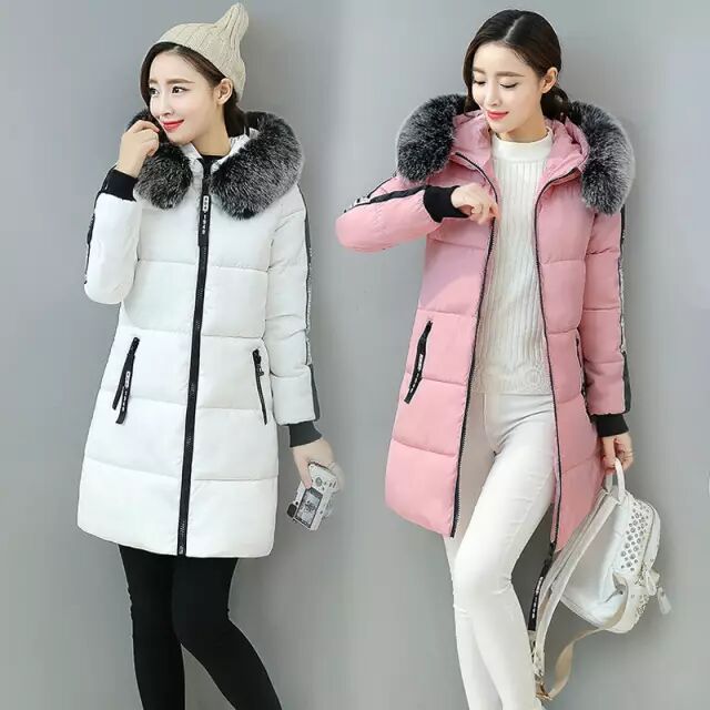 最简单大方的连帽棉服外套,中长的版型搭配上白色的紧身裤和运动鞋,舒适又很大方,遮住腰身赘肉可是很显瘦的哦!