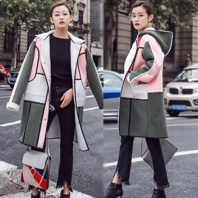 撞色拼接羊毛大衣显眼又时髦,毛绒绒的质感看上去就很暖和,搭配黑色微喇裤时髦的不得了