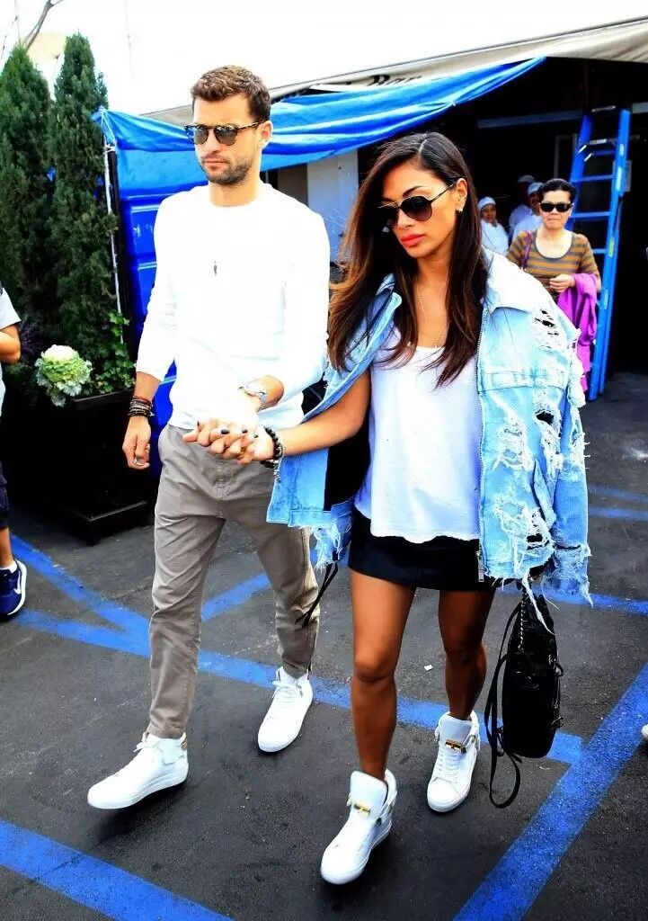 与男友外出就样这样搭配,水洗牛仔外套+白T,清爽干净,用破洞来助攻整体的造型。