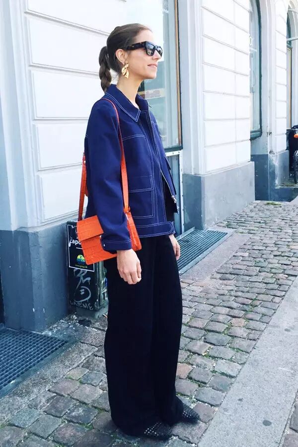 牛仔外套、阔腿裤,搭配帅气舒适,而牛仔蓝装上活力的橙色,帅气与阳光都有了!