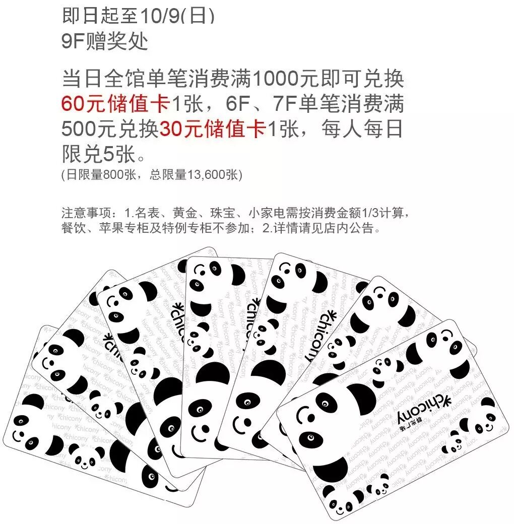 2.10月1日~10月7日,持会员卡购买满15000元可获赠500元储值卡一张!数量有限,先到先得!