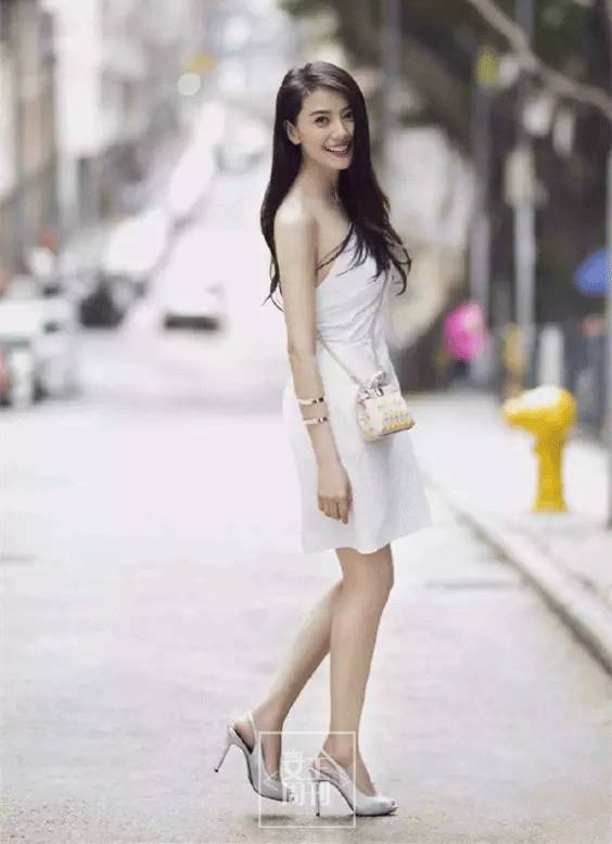 最经典的色系莫过于黑白,高圆圆也十分热衷于黑白色穿搭。一身白色斜肩连衣裙,搭配一双白色细高跟,清纯的同时也散发着女人味。