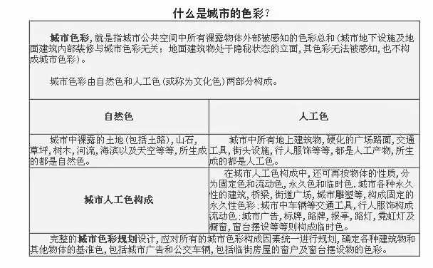 兰州市城市空间特色及城市色彩的规划研究提出,应加强沿两山、黄河两岸布置的建筑,严格控制建筑形式、规模、体量和景观环境等要素。城市色彩应与黄河、山体的厚重古朴的浅暖灰色基调协调,中心城区的色彩基调宜为淡雅明快的暖色系,局部地区辅助以深暖色系和深灰色系,在黄河、山体的自然色彩与建筑色彩之间形成良好的融合、过渡。据介绍,城市色彩规划是一个系统工程,目前兰州市进行的只是建筑物色彩的确定,在此基础上,下一步还将展开对流动色,如公交车、出租车以及街区色彩、临时色彩等的规划和引导。