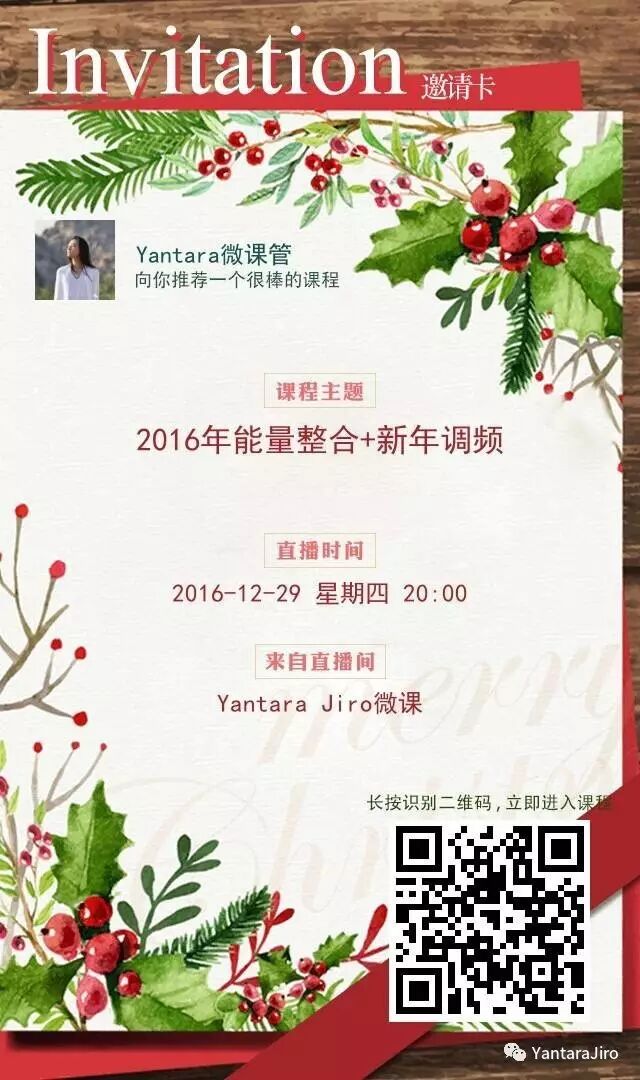 大家好!在2016年即将进入尾声,迎接新年之际,献上岁末祝福,感谢一直持续支持和关注Yantara老师。小编带着激动万分的心情通知大家,Yantara将在百忙之中给大家特别带领新年调频微课。