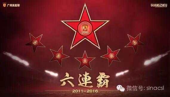 10月23日晚,中超联赛第28轮一场焦点战,广州恒大主场1-1战平延边富德,在联赛还剩下2轮情况下,领先第二名江苏苏宁7分,提前获得2016年中超冠军,也实现了中超联赛6连冠。广州恒大俱乐部赛后也发布夺冠海报:中超六连霸,广州未赢够,海报中六颗星星熠熠夺目。