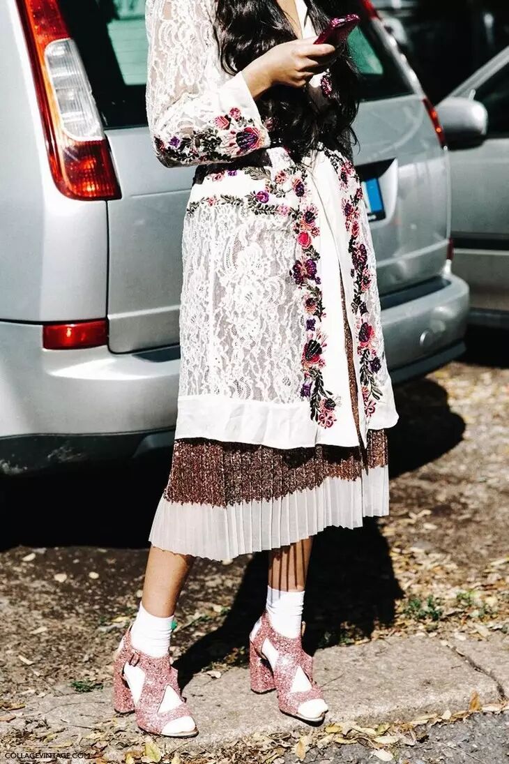 粗跟鞋向来都受欢迎,不仅走起路来更稳当,还有浓浓的复古味道。搭配裙装优雅,搭配裤装干练。同样也少不了刺绣、缎面和绑带元素的参与,使它变得华丽高贵起来~