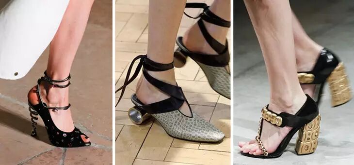 把金属质感的装饰物和鞋品组合,大概是时尚圈最有创意的设计之一。金属装饰令鞋子更像一件艺术品,它以不同形式出现在鞋子的各个角落~当金属装饰或是鞋跟与高跟鞋结合时,就像给鞋子穿上了神秘的外衣~