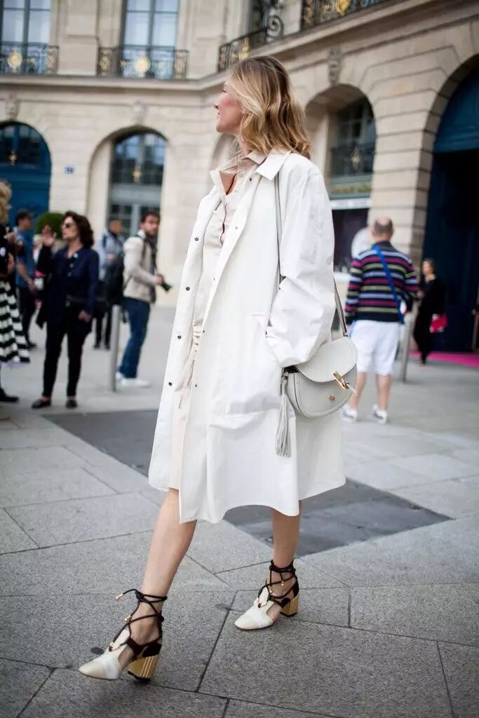 搭配透视印花裙气质优雅,搭配长款风衣帅气干练~