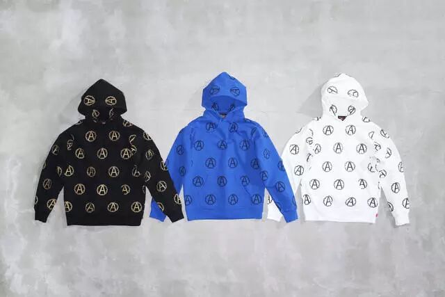 满版“Anarchy”标语印花以及图案拼接等,都好像要把无政府、高度自由化的理念推向高潮,也从另外一面强调了UNDERCOVER和Supreme这两个街头大牌一直以来的特例独行的设计态度,要玩就玩大的,Who cares?