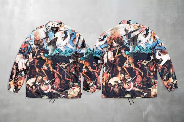 街头风格与艺术体现的激烈碰撞很好的呈现在了此款Coach Jacket之上,以荷兰最伟大画家Pieter Bruegel的作品《The Fall of the Rebel Angels》作为了这次的设计题材,宗教的东西很容易最为一种复古的表现形式,合理的运用总能制造出意想不到的感官刺激,这次Supreme x和UNDERCOVER做到了。