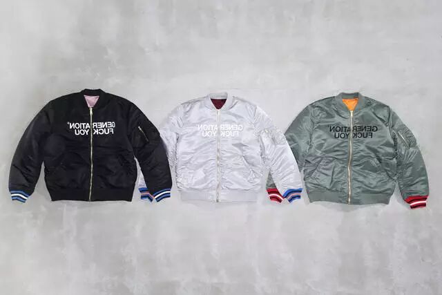 好像今年大家都有一种要与Gosha一争高下的感觉,这次Supreme x UNDERCOVER也带来了多款羊毛材质单品,此件羊毛衫就将UNDERCOVER经典的Generation Fuck You标语倒置在胸前。