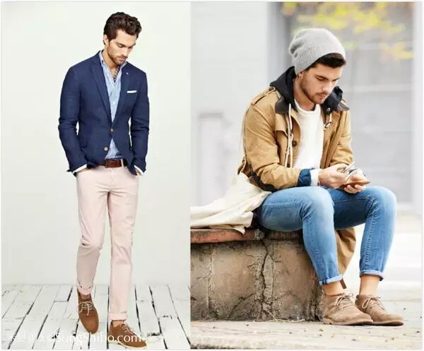 正装牛津鞋搭配休闲装还是不大合适,考虑到喜欢穿牛仔或卡其裤的,可能想要更街头,可以配一双麂皮德比鞋,两接或者单张皮的款式都不错。