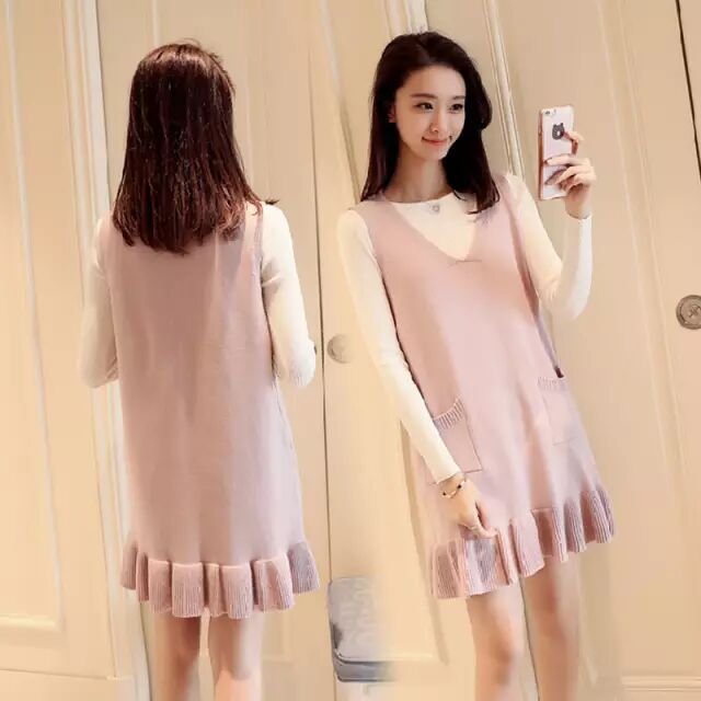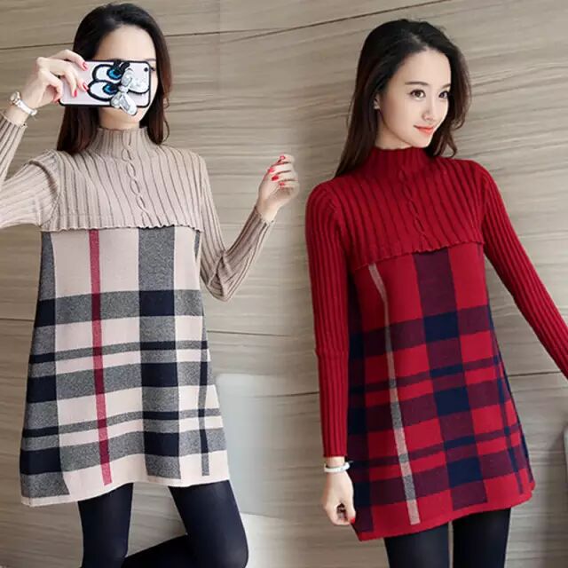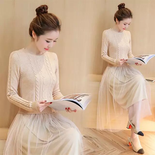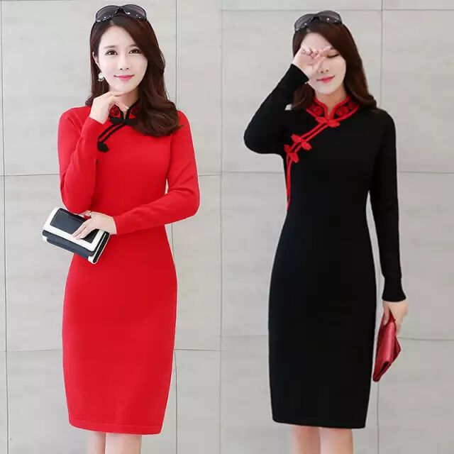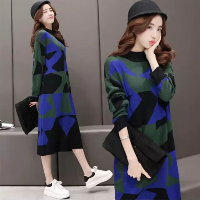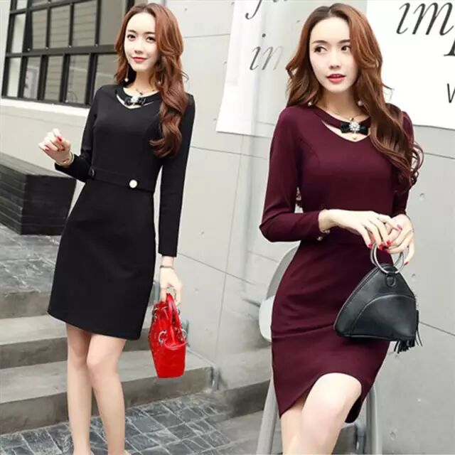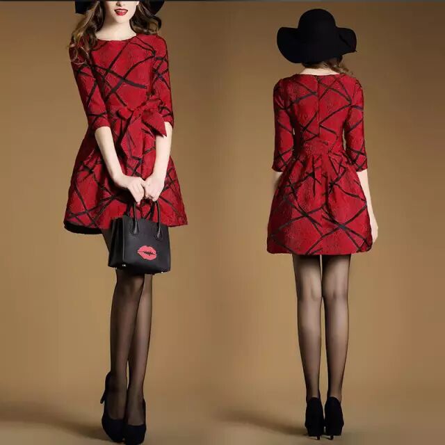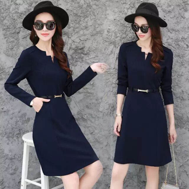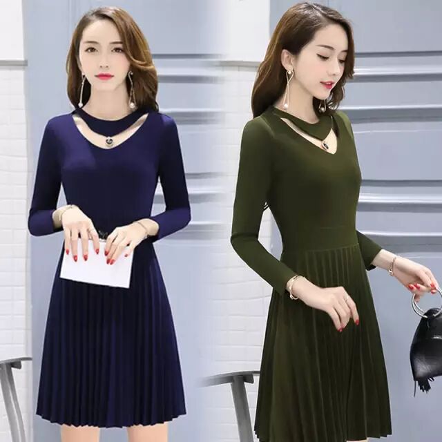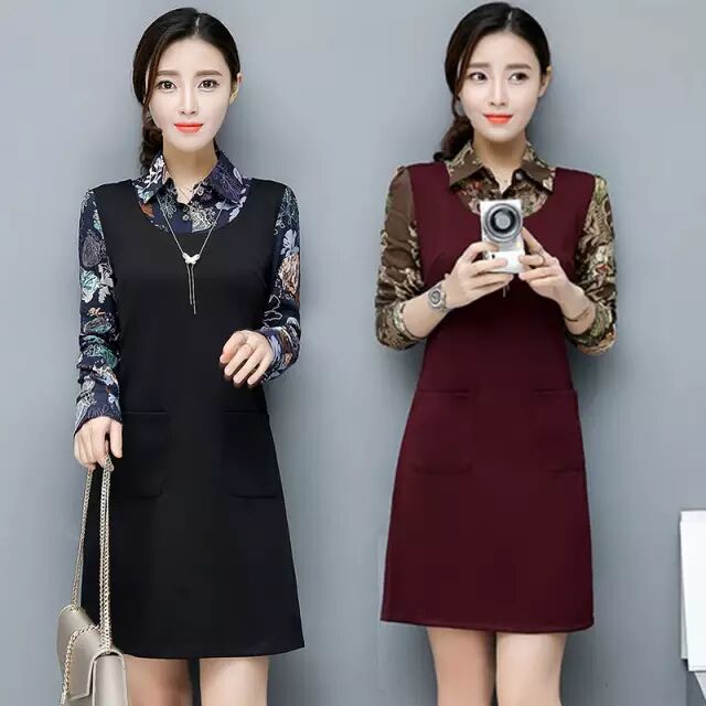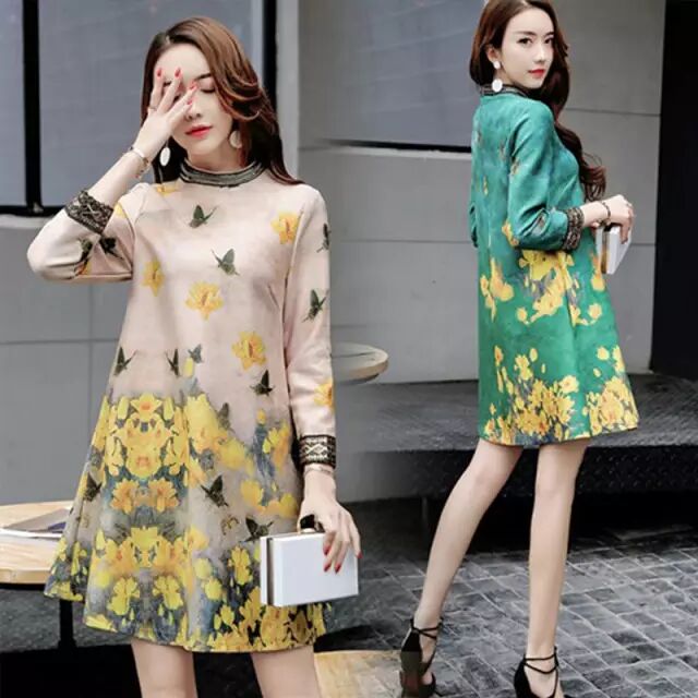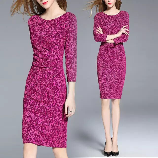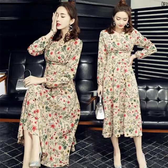 韩版百搭甜美长袖花色显瘦修身连衣裙