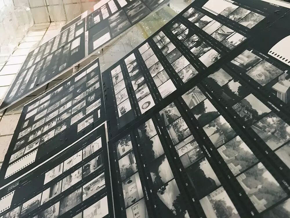 接下来等底片晾干,把底片六张为一组剪开,放入底片袋里,进行接触印相。这也是第一次看到自己拍的照片成像,慢慢显影的过程。