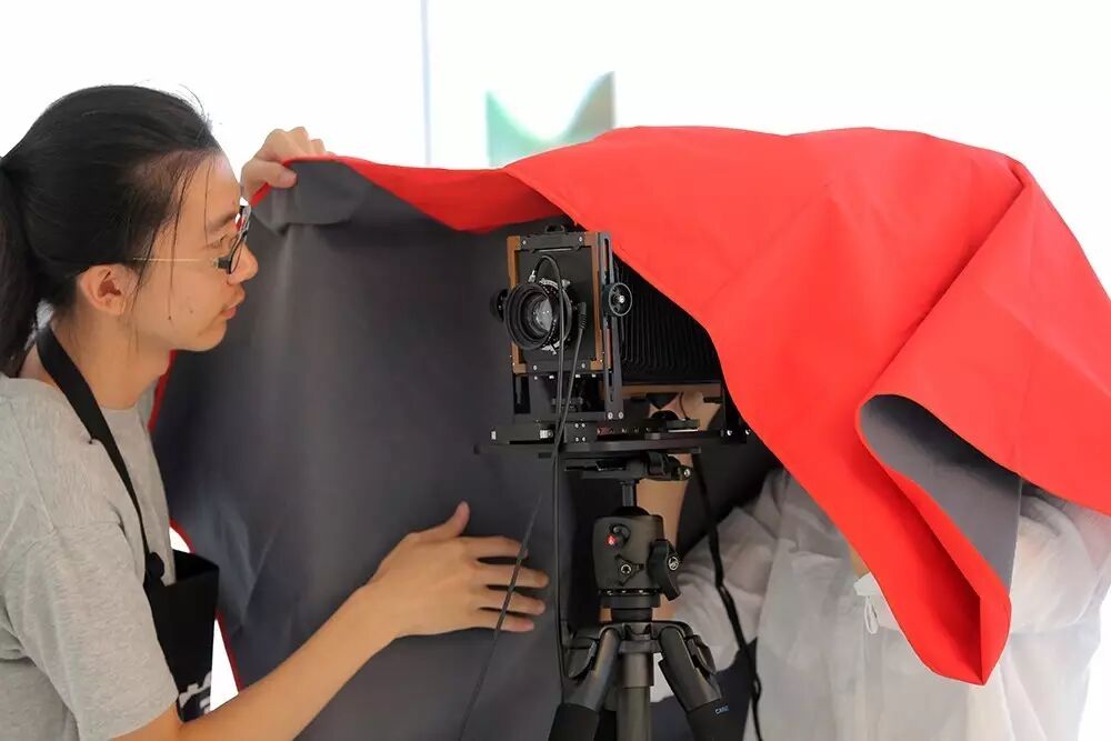 我们常常在影视中看到的复古照相馆里,老先生会把头蒙在一块红布里为家庭拍摄肖像合影,实际上那块红布,就是为方便摄影师对焦、取景的冠布。在画英雄,你可以尝试体验一把大画幅相机的拍摄过程,感受一下旧时摄影的乐趣~