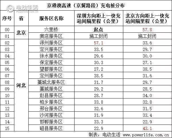 京冀路段单程大约460公里,共设立15个服务区,平均30.6公里一个服务区,其中窦店服务区封闭改造,其余14个服务区双方向均设有直流快速充电站,平均每32.8公里一个充电站,涿州服务区到六里桥的57.8公里,是京冀路段充电站之间的最大跨度,对于配有直流快充的纯电动汽车而言,京冀路段的充电站建设能够满足出行需求。
