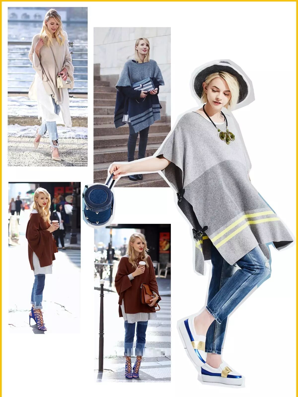经典斗篷款欧美博主街拍款,时尚设计侧边开衩款型独特,上衣+披肩两用更时髦, 搭配牛仔裤高能显瘦利器。