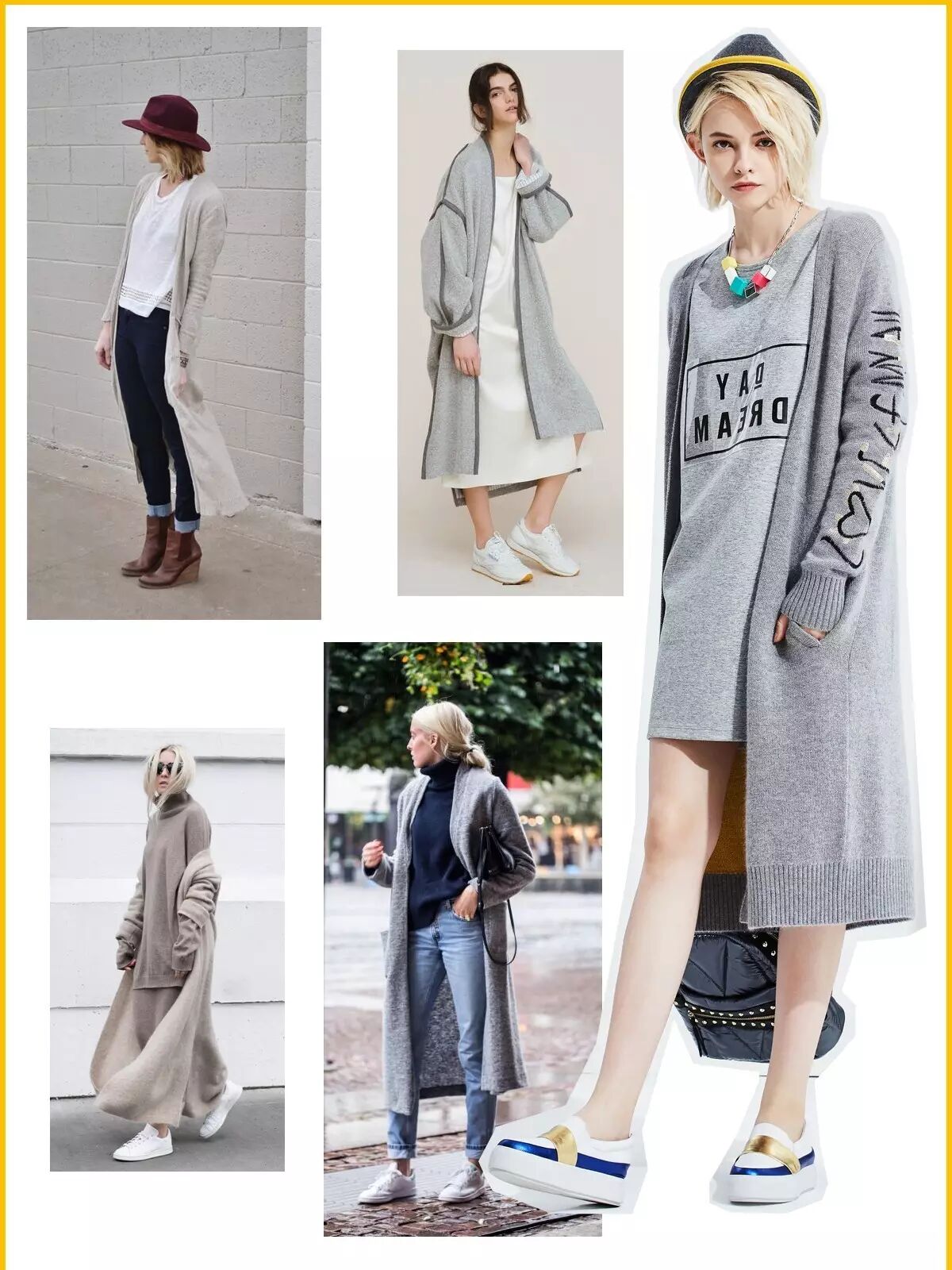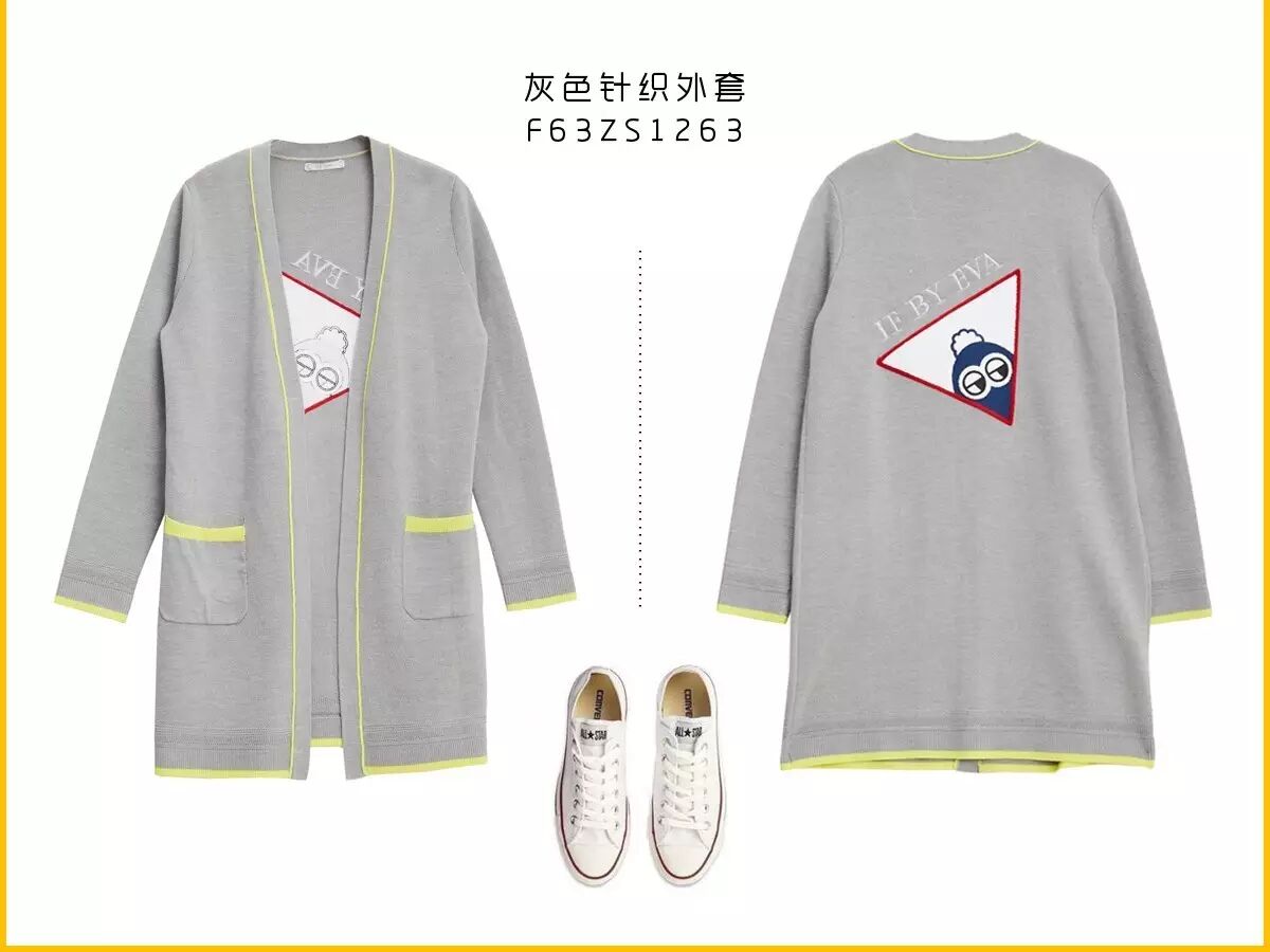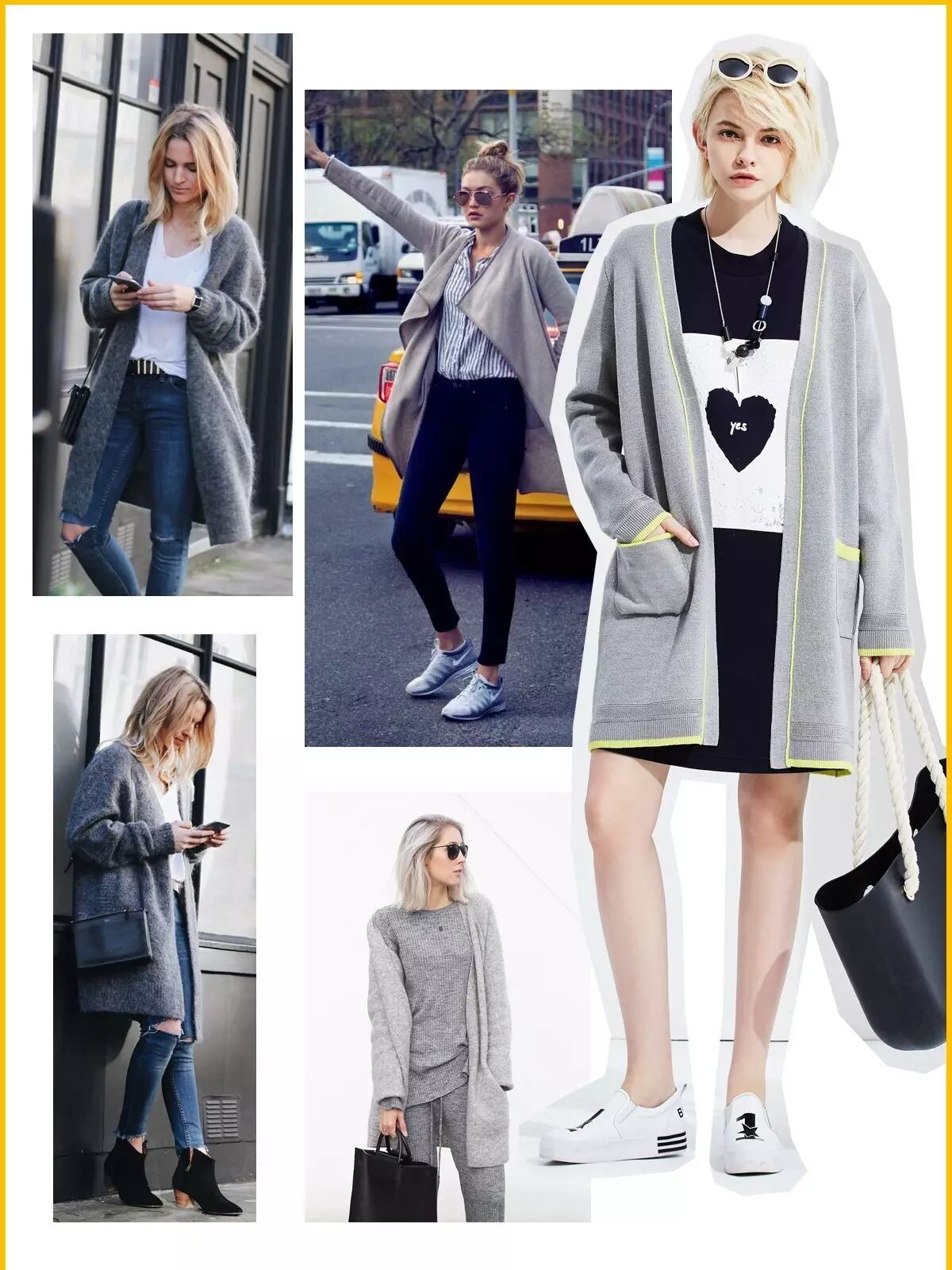 中长款针织开衫超模GIGI出街风格款,街拍亮点来自背部趣味个性图案设计,增加流行度和时髦感,款式休闲百搭。