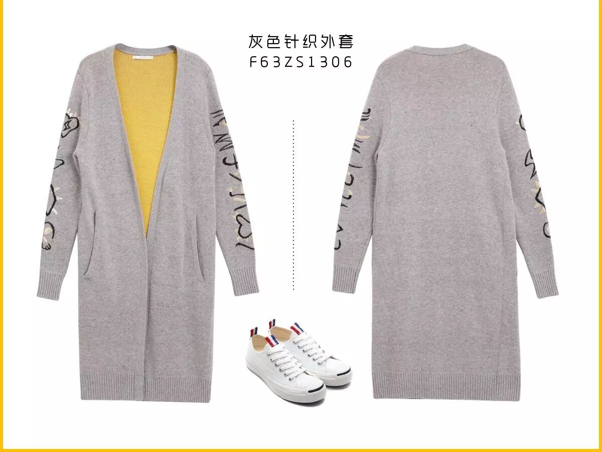 秋季主流色“奶奶灰”经典百搭,细针织法柔软舒适,长款+英文钩花设计休闲街图时髦范儿!