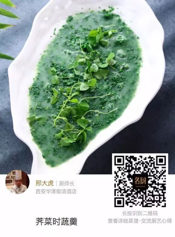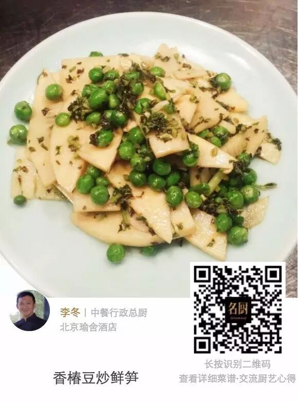 喜欢琢磨和创新的李冬师傅,就在名厨APP里发布了春意盎然的"香椿豆炒鲜笋"。平时大厨们喜欢做成凉菜的食材,李冬师傅把它们做成了热菜,更能激发出鲜香。