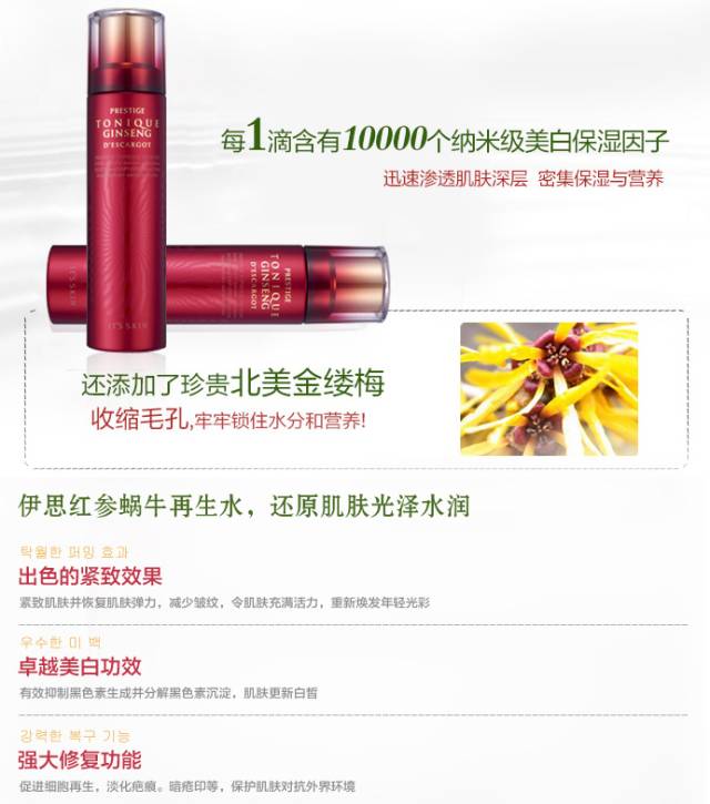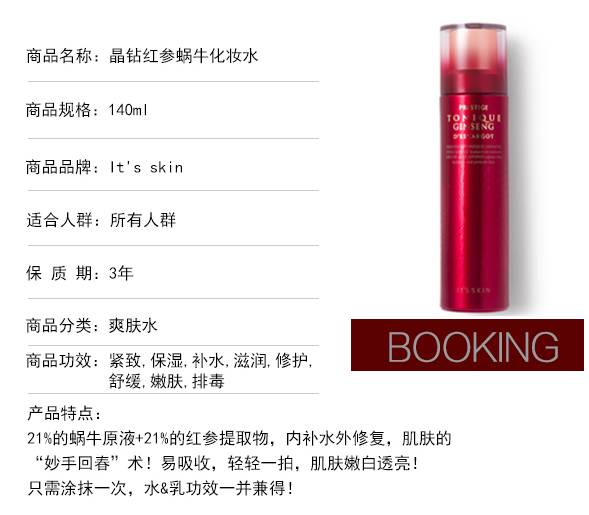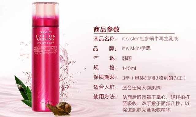 its skin伊思红参蜗牛爽肤水柔肤化妆水