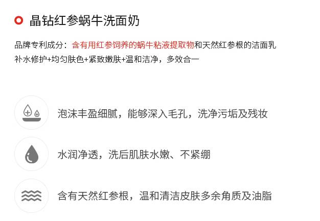小编点评:这款红参洗面奶属于低泡型,能够很轻松的洁面,味道很好闻,淡淡的参味。洗完之后一点不会觉得紧绷!