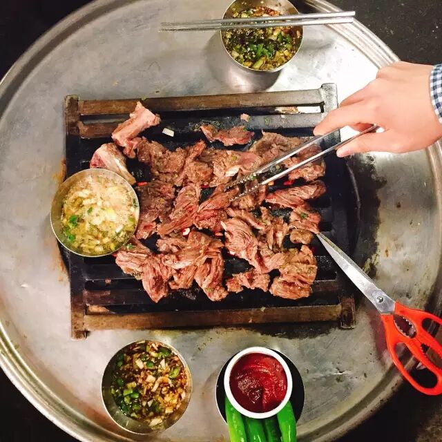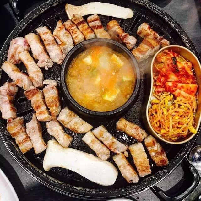 说到韩国料理怎么能不想到烤肉呢?韩国烧烤的种类不算少,像是韩牛、排骨、大肠、猪皮等,其中又属烤五花肉最广为人知,肥美的五花肉烤得焦香焦香,加上一片蒜片一点辣酱,最后包上生菜一口吃下肚,应该很少人可以不被这简单却美味的食物征服!