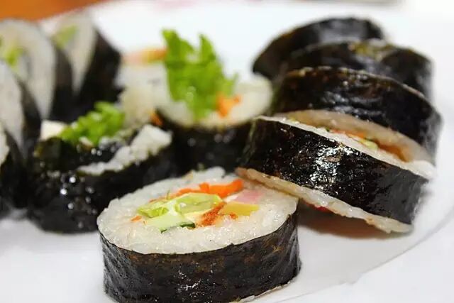 紫菜包饭作为韩国的传统饮食广泛流传至今,做法简单方便,更便于携带随时可吃。常见的做饭是用紫菜将煮熟的米饭与蔬菜,肉类等包卷起来,与日本的寿司也有几分相似,外形漂亮精致,味道清新可口。