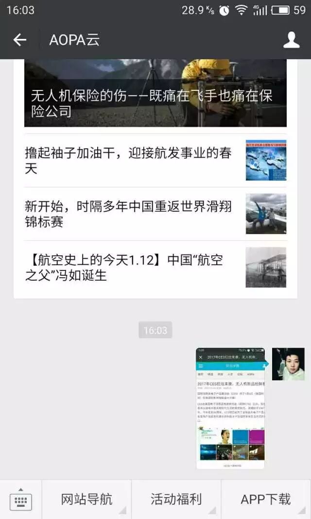3、将截图发送至AOPA云微信订阅号(aopayun)