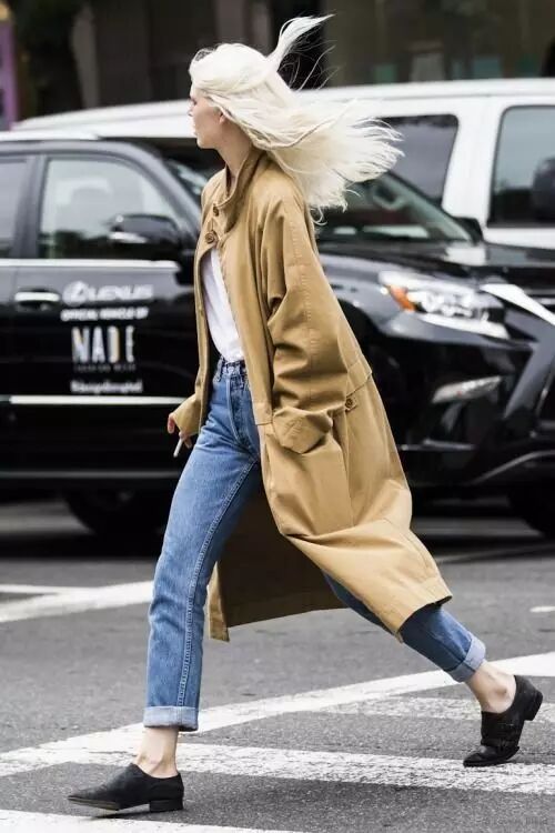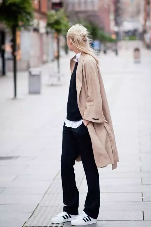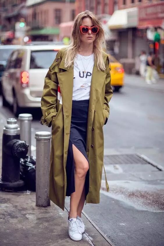 或者来一条宽松的长裤,配小白鞋和风衣,很潇洒不羁。