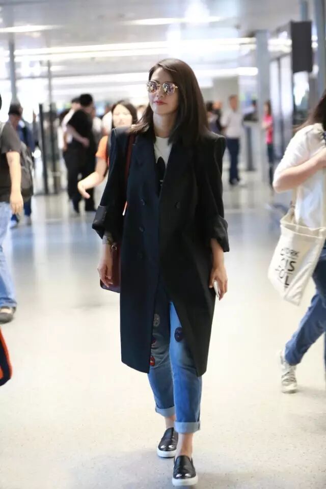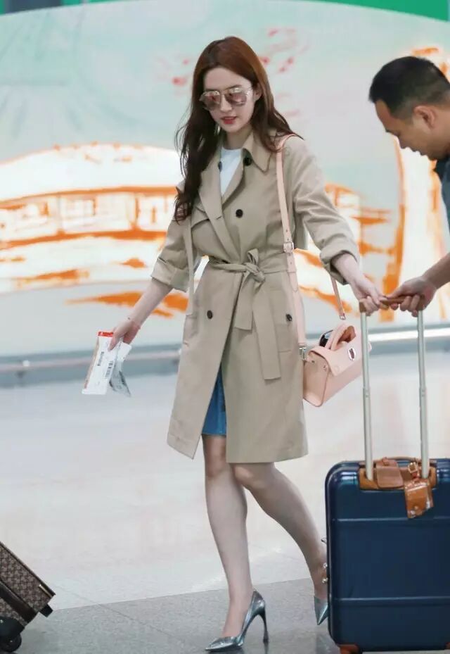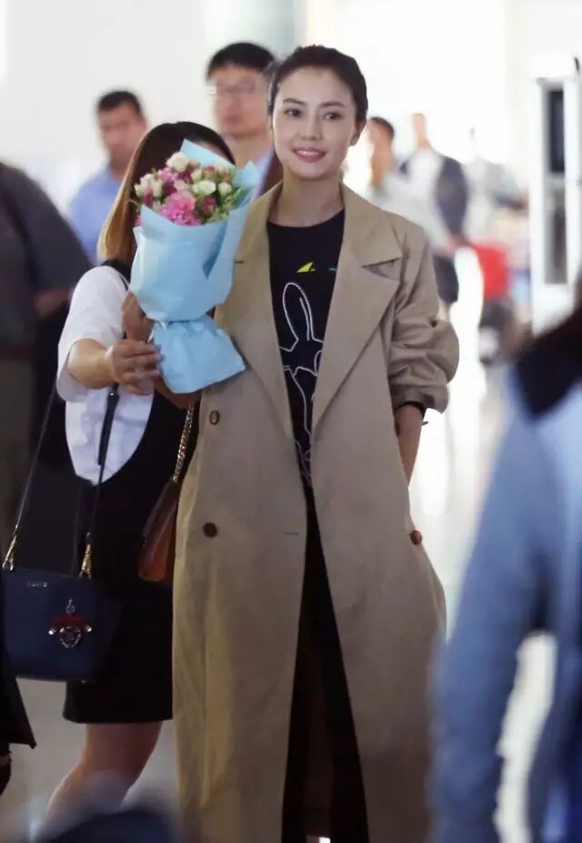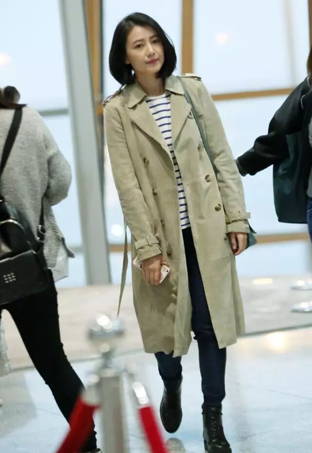 高圆圆总是将风衣穿的很随性又舒服,随便搭一件T恤和牛仔,外面一件风衣,是最经典不容易出错的穿法,可以参考哦。