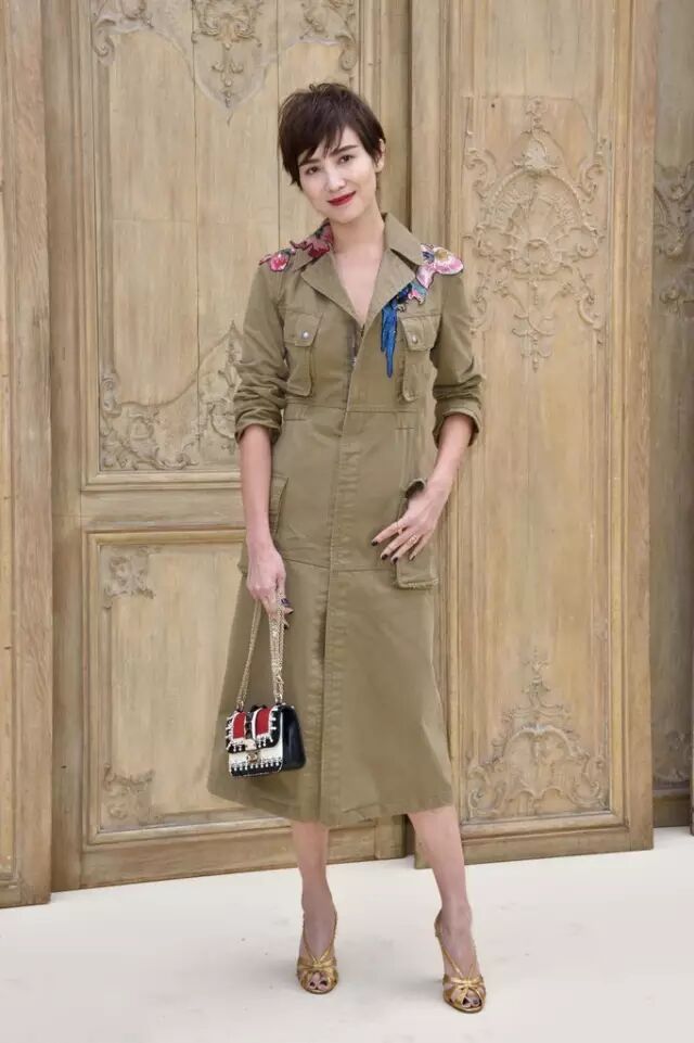 在去年LV的秀场上,刘涛一件LV风衣配马丁靴,穿出了帅气的味道,风衣也是Real好搭。