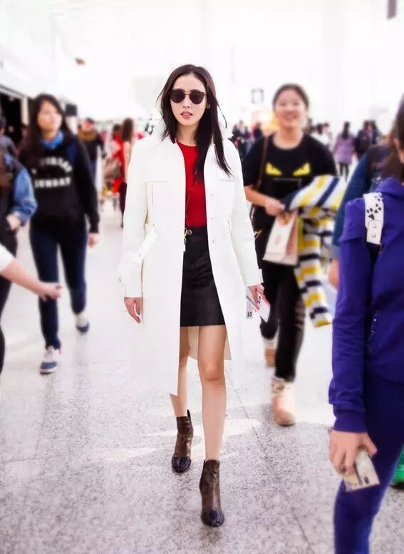 张天爱穿起白色风衣,显得更加秀丽干净,这么看来风衣还整得能把人显得修长挺拔。