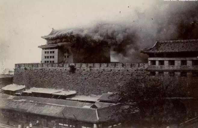 正阳门履次失火重修,1900年,箭楼在义和团拳民焚烧前门外大栅栏时,被飞溅火星引燃烧毁。当年冬天,城楼被生火取暖的印度士兵不慎烧毁,目前的城楼和箭楼都是民国期间重修的。