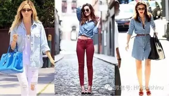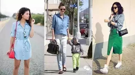 谁的衣橱里没有一两件牛仔衬衫或外套呢?长款的衬衫就配个腰带,短款的就在腰上打个结,分分钟提升时髦度!牛仔外套就更是搭配的好伙伴了,鞋柜中哪一件都可以和它配。