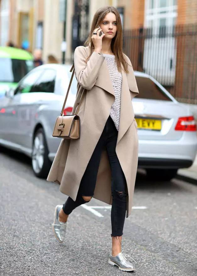 而对于大腿有些粗,臀部有些宽的姑娘,选择长款风衣能够遮挡住下身的一些不足,不管是敞开还是扎上腰带都能解决身材的不完美。
