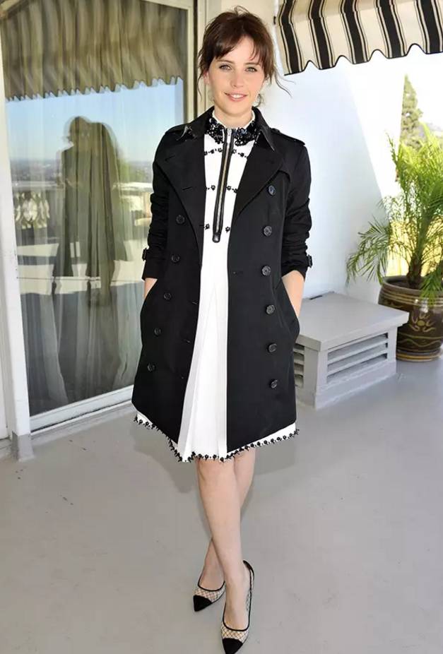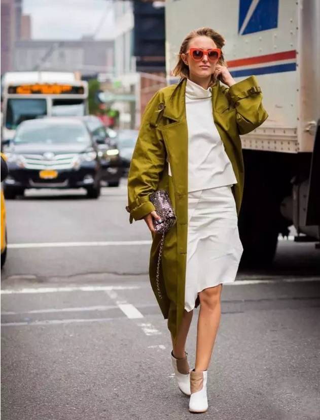 值得注意的是,选择这两种色彩风衣的时候,身上其他颜色要够简洁,以黑、白、红三色搭配最佳。