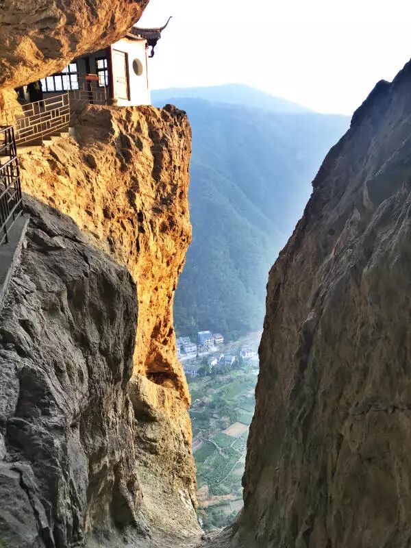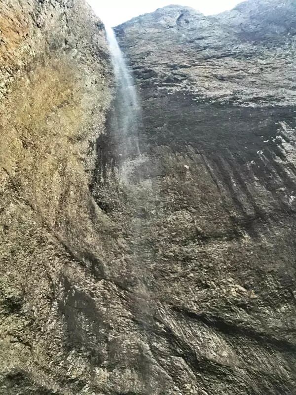 大龙湫是次日清晨去的,天还蒙蒙亮,走在山路上,就如同走入村落的那种宁静闲适,空气格外清新,仿佛带有小雨的味道,喜欢这份宁静,仿佛是一次行走的冥想。看到大龙湫的时候,如同看到一条白色绸缎从190米高的空中洒落下来,一直垂坠到山底,让人不禁想到“飞流直下三千尺,疑是银河落九天”的诗句,瀑布的水滴溅起,落到最后,化作烟云,若有若无,如果是在阳光的照耀下,会不会变成七彩水滴,如梦如幻。