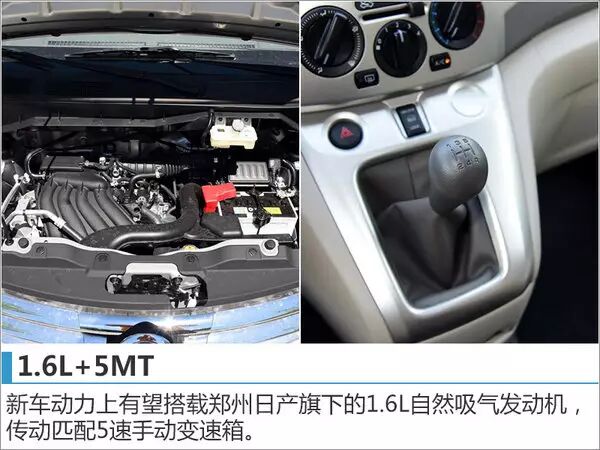 新车在定位上,将主攻家用车市场,是一台小型MPV。动力系统上,新车将有望搭载与郑州日产NV200同款的1.4L自然吸气发动机,最大输出功率91kW,峰值扭矩153Nm。传动方面匹配5档手动变速箱。上市之后,将竞争同样主攻家用市场的MPV市场霸主五菱宏光。