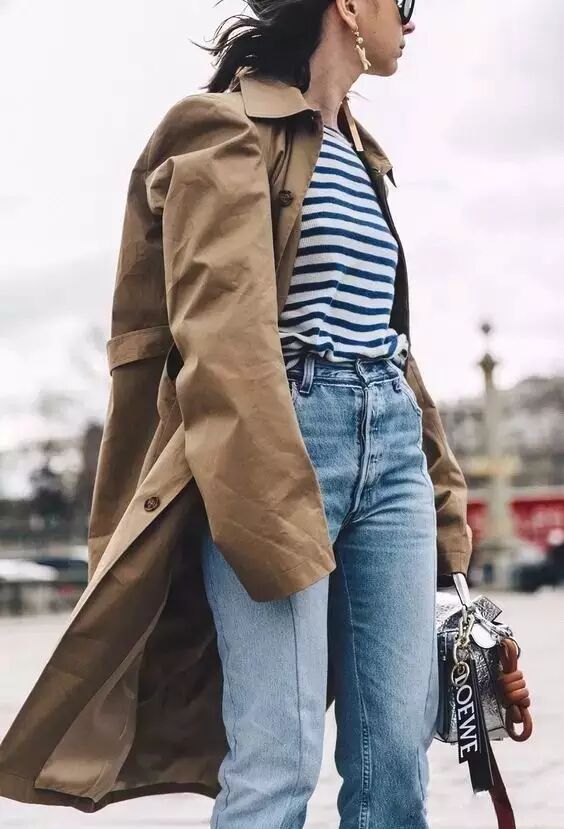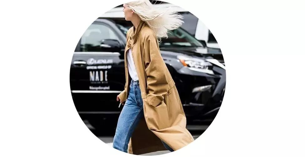 在简单的T恤/衬衫配牛仔裤的基础上,只要搭配一件挡风的风衣,就是最Chic最拉风的搭配了。