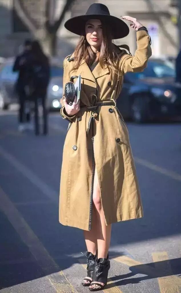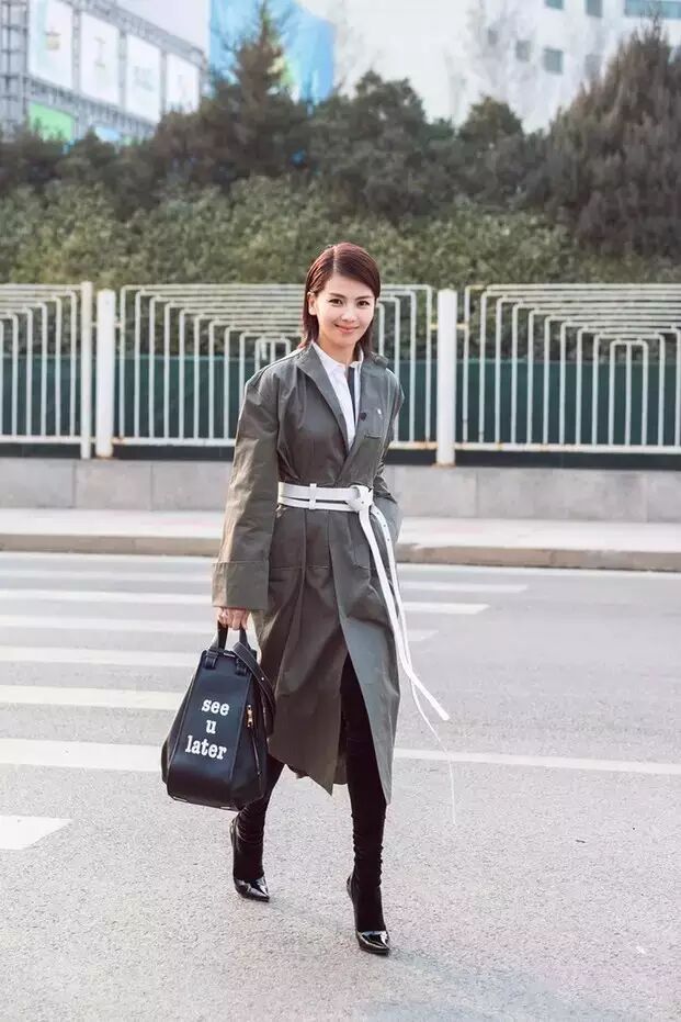 很多人将风衣敞开穿,但其实风衣束腰穿也很迷人。