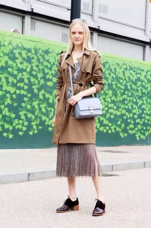 风衣与裙装搭配,不管是配连衣裙还是半裙,让你更加优雅迷人。