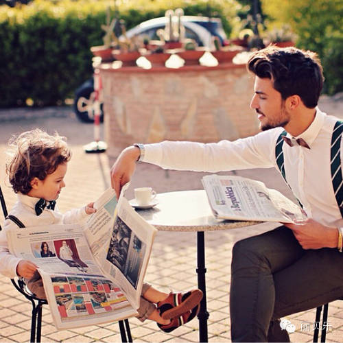 英伦风的父子俩,衬衫+背带裤+蝴蝶结,犹如两位绅士~