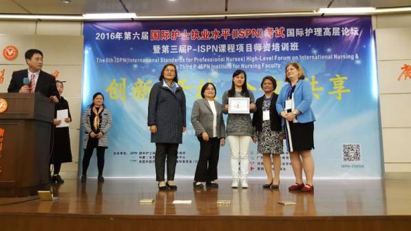 2016年11月11日,第六届国际护士执业水平(ISPN)考试国际护理高层论坛暨第三届P-ISPN课程项目师资培训班——国际授课师资资格证书在广州颁发。宏景国际教育RN高级讲师Feifei获美国外国护理院校毕业生国际委员会(CGFNS)颁发此证。