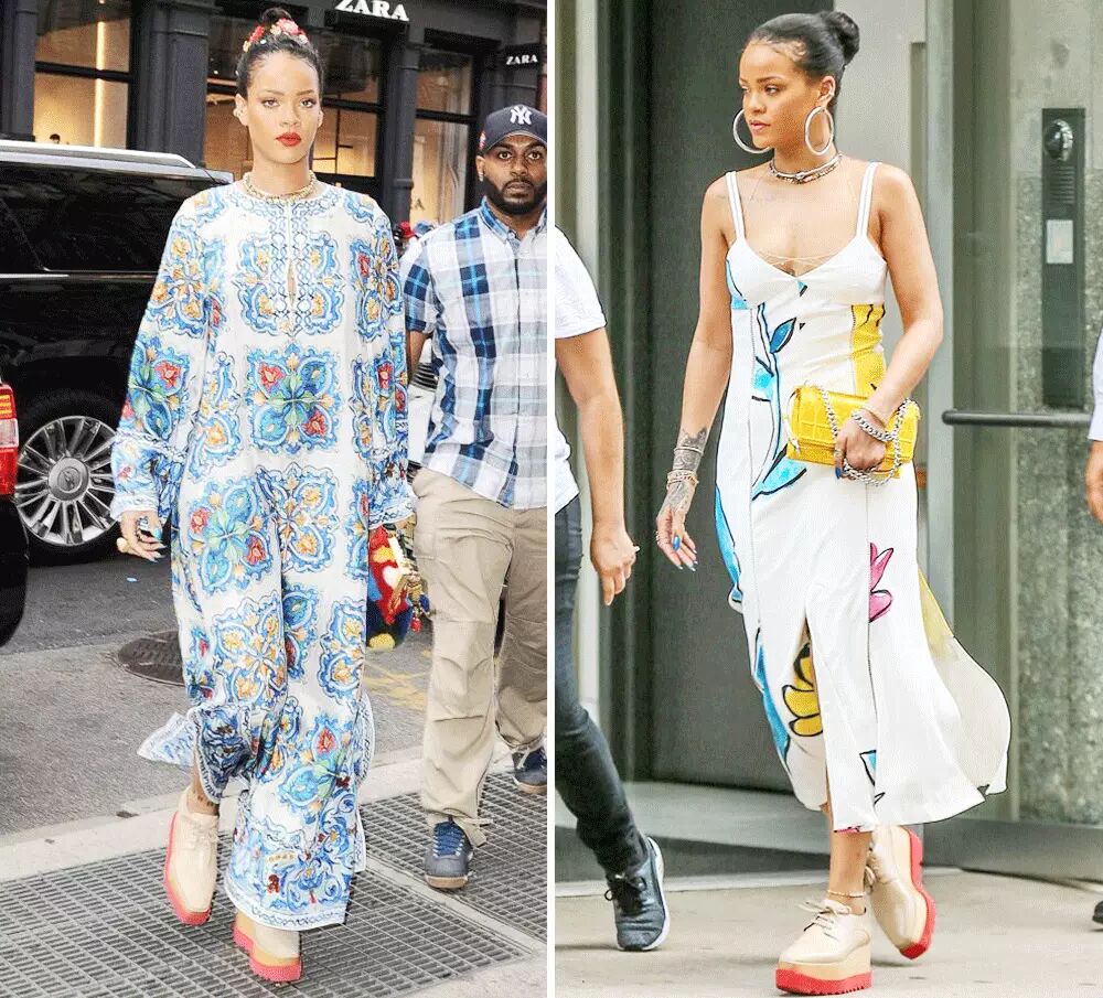 Riri把印花裙穿得很民族风,又混搭了一双夸张又违和的松糕鞋,看起来就很酷啊~但是我们普通人不好驾驭。