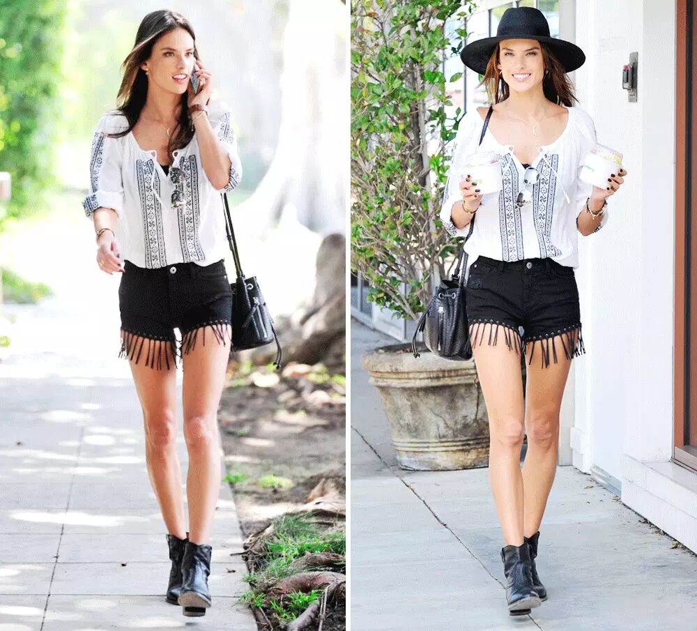 身高一米六的Hudgens在腰间绑上牛仔衬衫,里面还调皮的单肩穿背带裤,有种“可爱酷”的Feel~