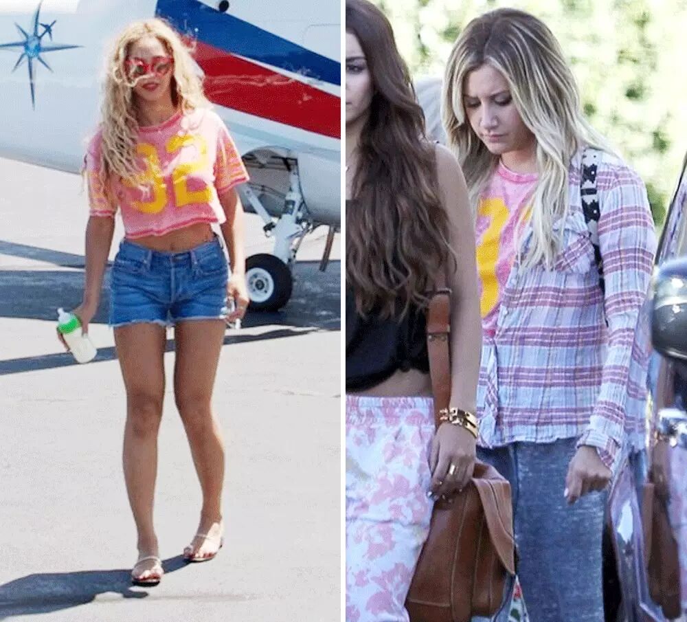 Beyonce还和Ashley Tisdale撞过一次数字Tee的衫~