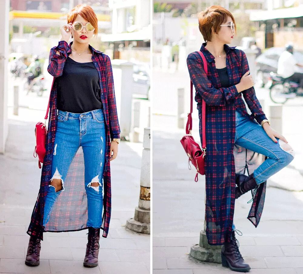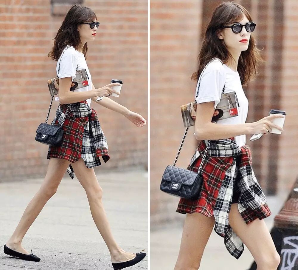 像钟小姐这样,白衫短裤系件格纹衬衫,是最常见的套路。