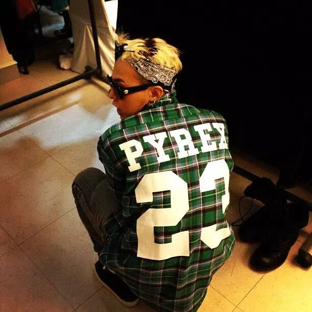 当年PYREX的数字衬衫就火到不行,作为侃爷的媳妇,金大姐当然也穿过潮牌。