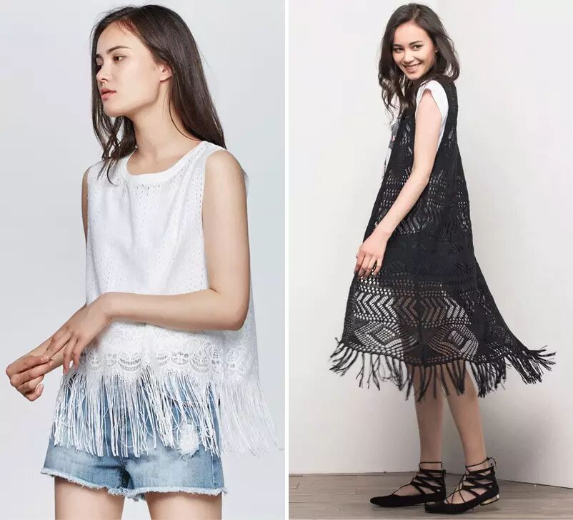 L: 流苏钩花纯色背心 ¥99 ¥49